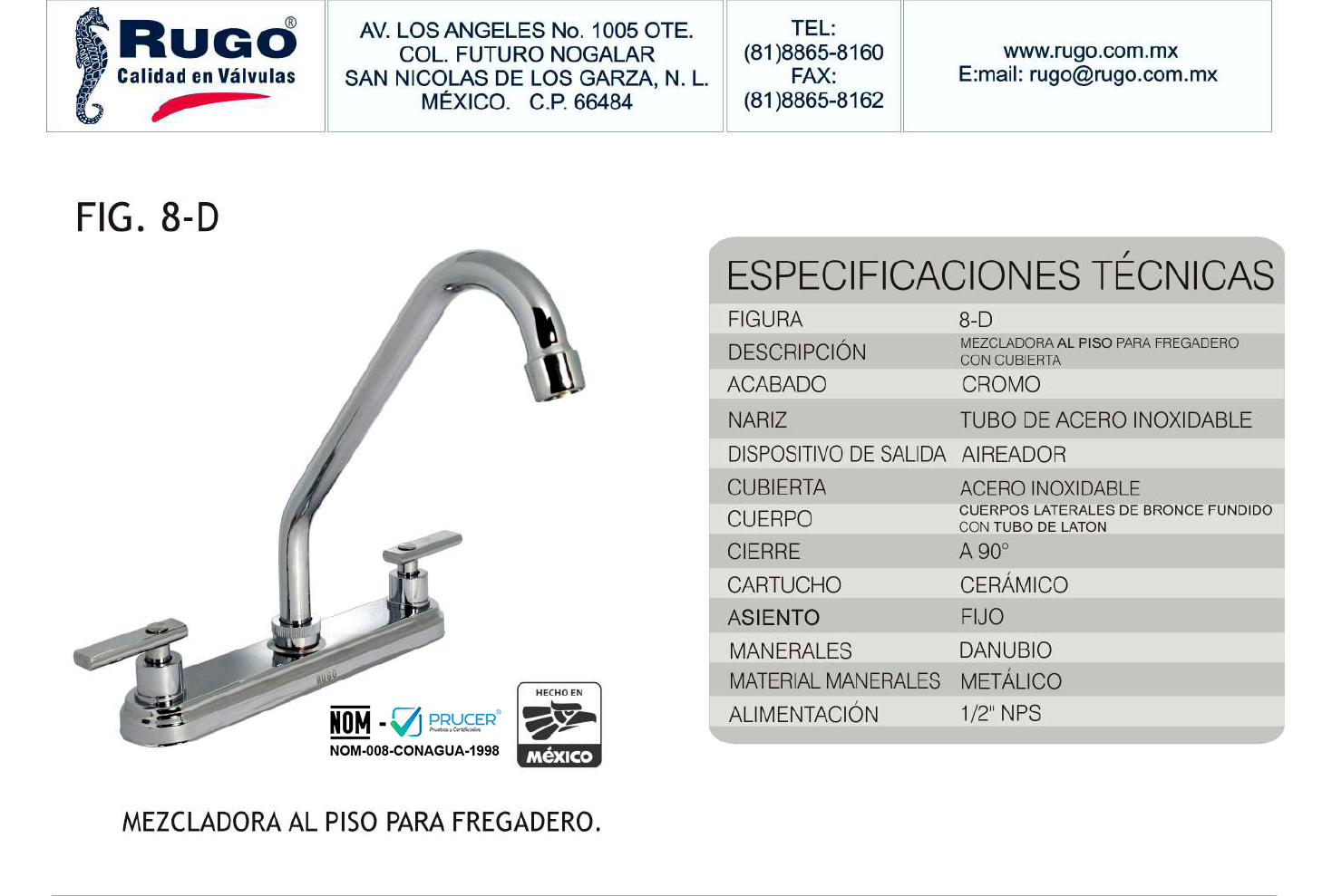 MEZCLADORA PARA FREGADERO de RUGO es un producto profesional. MEZC.P/FREG.MAN/DANUBIO AC/CROMO