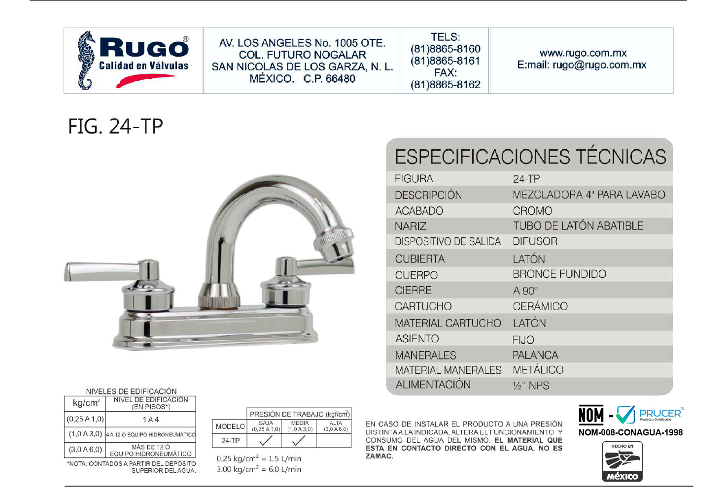 MEZCLADORA PARA LAVABO 4” CIERRE DE 90° de RUGO es un producto profesional. MEZC.LAV.4″ M/PALANCA CARTUCHO CERAMICO