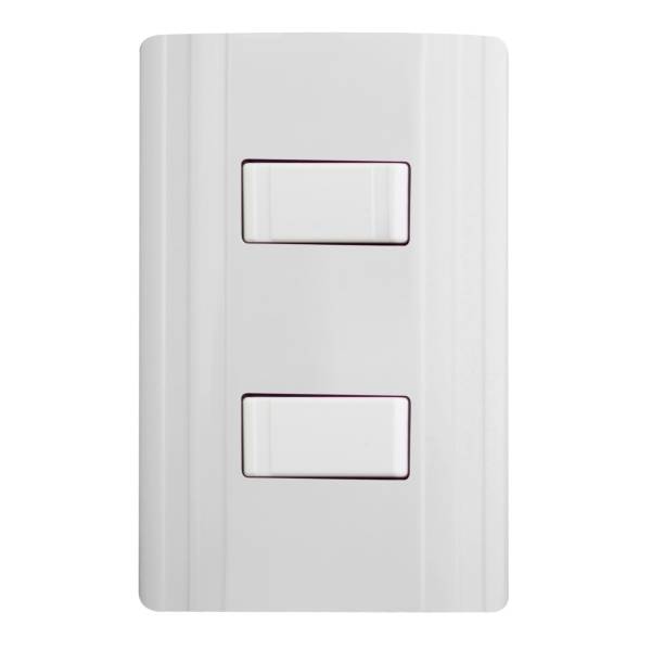 Placa 2 ventanas con apagadores sencillo y apagador escalera blanco Corsa Montana
