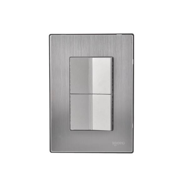 Placa 3 ventanas con 2 apagadores sencillos plata Inox-1.5 Igoto