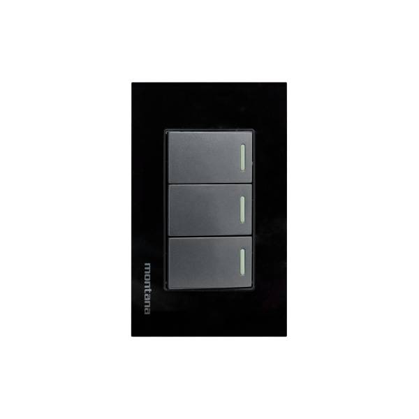 Placa 3 vent c/3 apag senc negro Krystal Montana