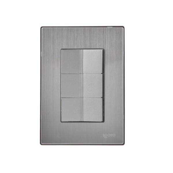 Placa 3 ventanas con 3 apagadores sencillos plata Inox Igoto