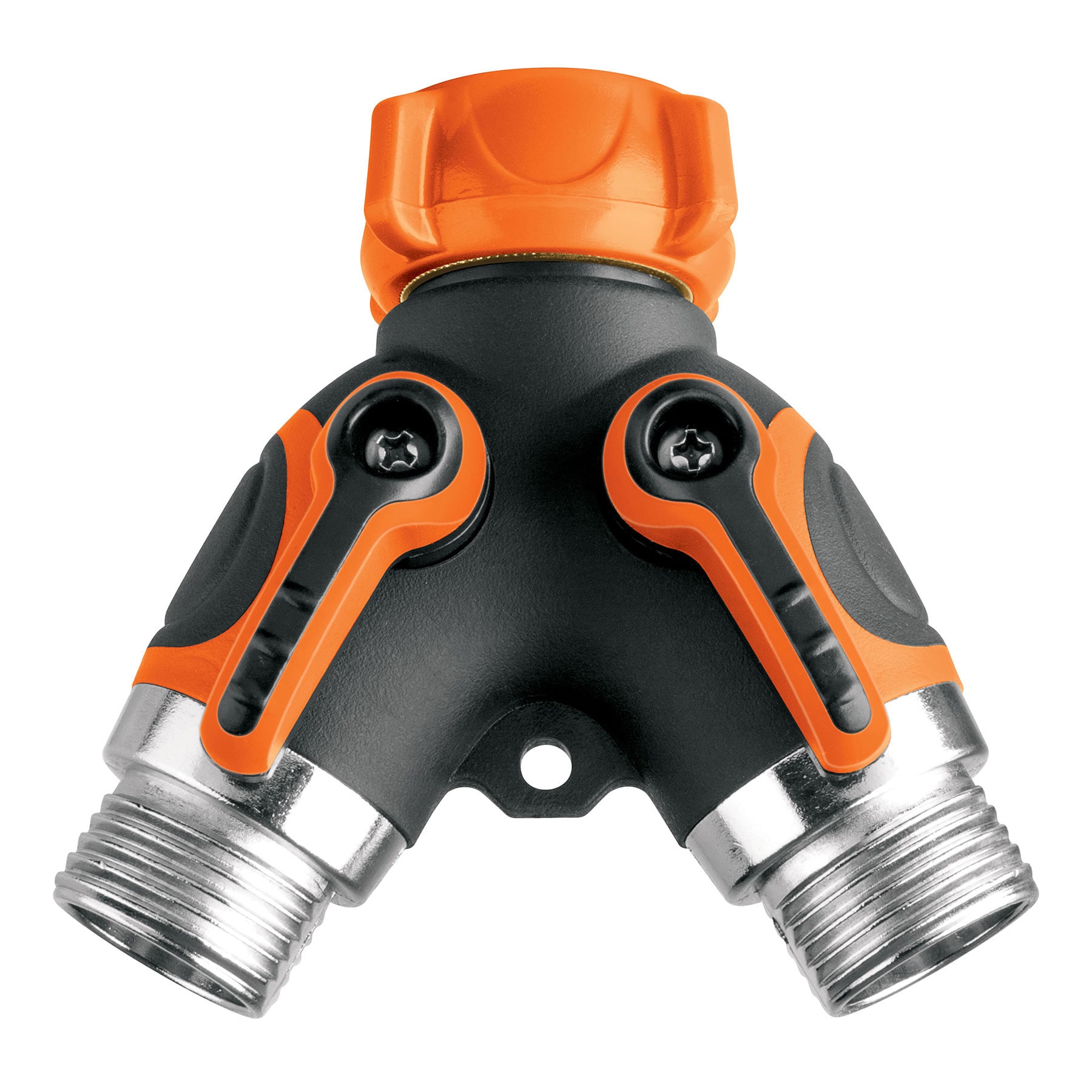 Cuerpo plástico cubierto de TPR resistente a impactos. Tuerca móvil para fácil instalación. Válvulas para ajustar el flujo o cerrar cada conexión. Cuerpo plástico cubierto de TPR resistente a impactos. Tuerca móvil para fácil instalación. Válvulas para ajustar el flujo o cerrar cada conexión