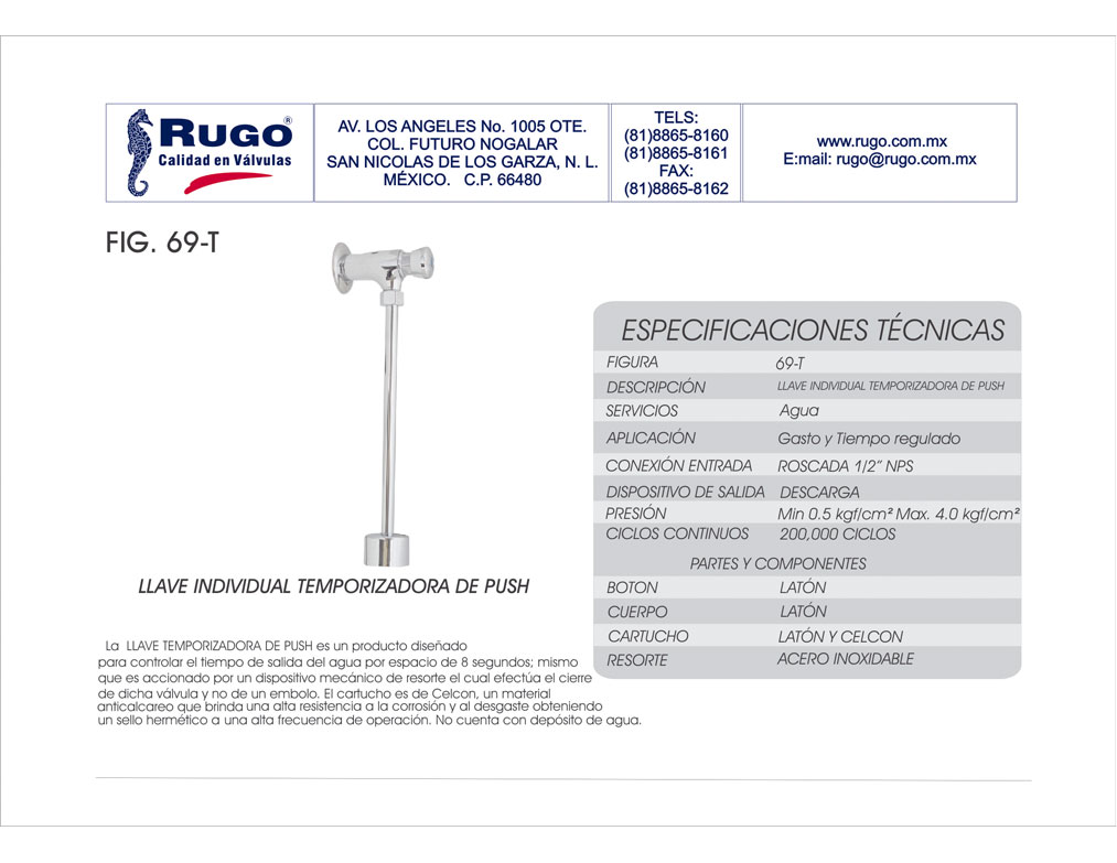TEMPORIZADOR PARA MINGITORIO de RUGO es un producto profesional. MIGITORIO DE PUSH